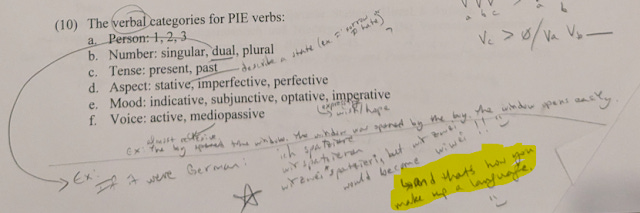 The last linguistics course I took was History of the German language as part of my master's degree (MAT) in Germanic Studies. My professor, Tracy Hall, had created his own course materials, which I printed and bound at the beginning of the semester, and used for notetaking when we went through them during class.